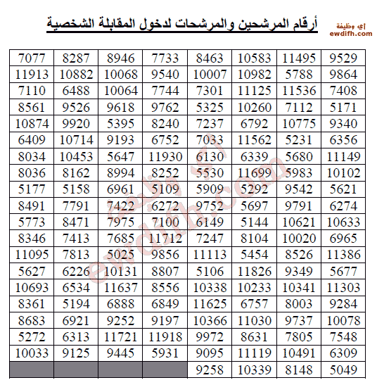 تدعو الجامعة الحضور لمن ورد اسمه في البيان المدرج إلى موقع إجراء المقابلة الشخصية في اليوم والتاريخ المحددين، مع اصطحاب المستندات التالية: